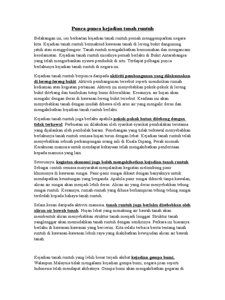 Tanah Runtuh Docx Karangan Spm 2012 Punca Dan Kesan Kejadian Tanah Runtuh Kejadian Tanah Runtuh Sering Berlaku Di Negara Ini Jelaskan Punca Punca Dan Course Hero